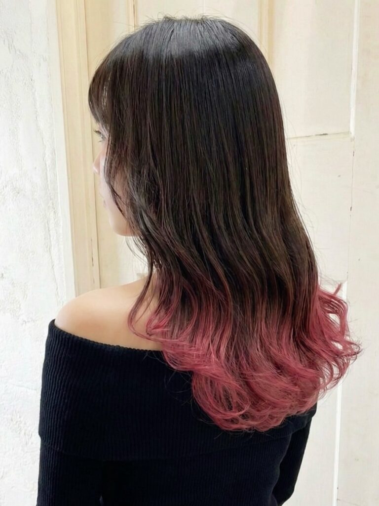 大人可愛い雰囲気をめざすなら、ピンクのブリーチなしグラデーションカラーに染めましょう。