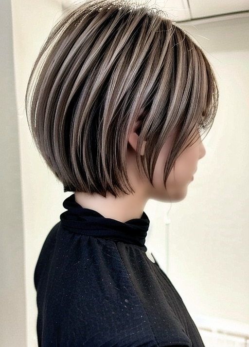 アッシュの透明感や立体感が引き立ち、ショートヘアがグッと洗練された印象に仕上がります。