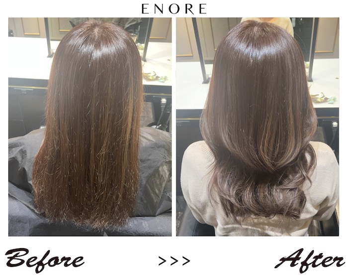 ENORE表参道店は、髪への負担が少ないカラー剤を使用するので、メッシュを入れてもうるツヤな髪でいられます。