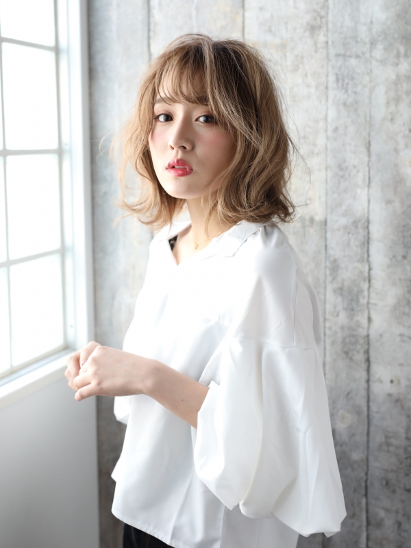 ゆるふわな質感を引き立てるゴールドアッシュのヘアカラー。