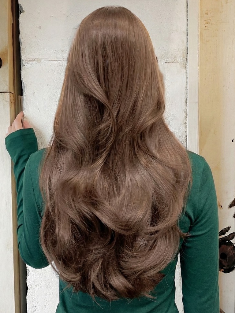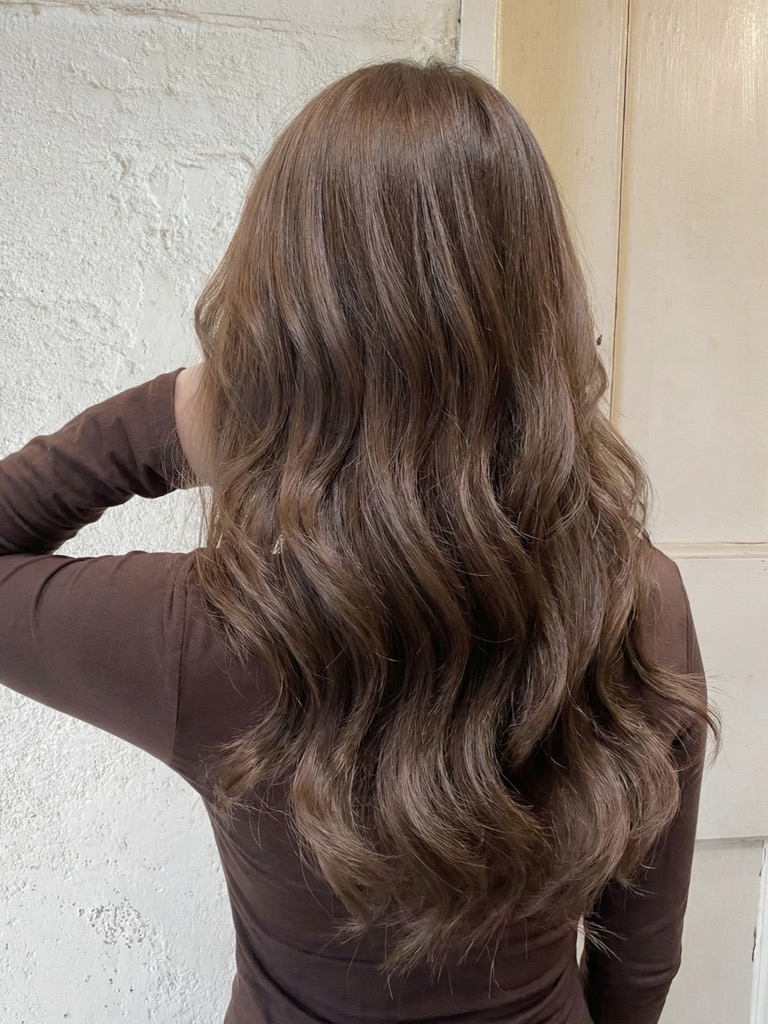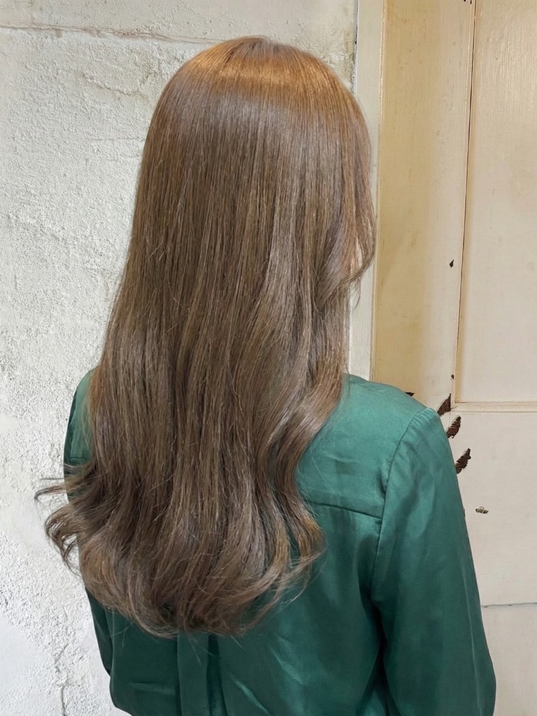 暗めヘーゼルベージュでしっとりしたツヤ髪に