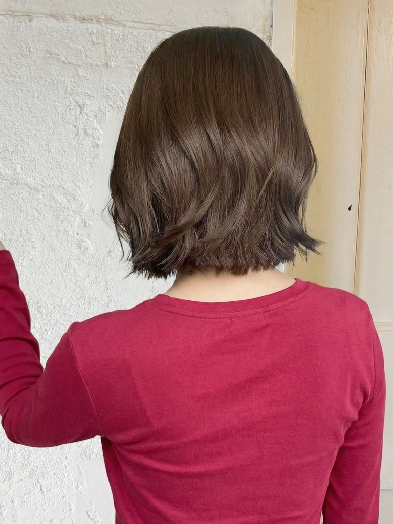 赤みを抑えて染めることで、みずみずしさのある髪色になります。