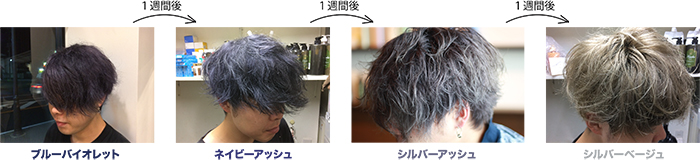 「ブルーバイオレット→ネイビーアッシュ→シルバーアッシュ→シルバーベージュ」