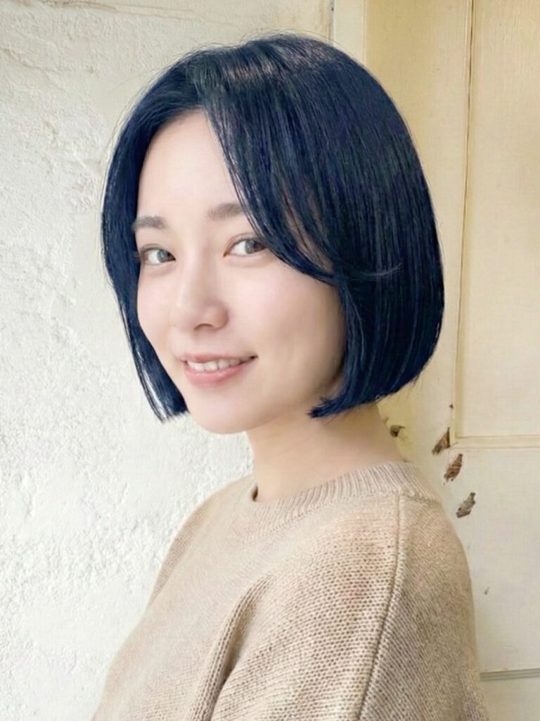 ショートボブに光沢感をプラスしてくれるブルーブラック。