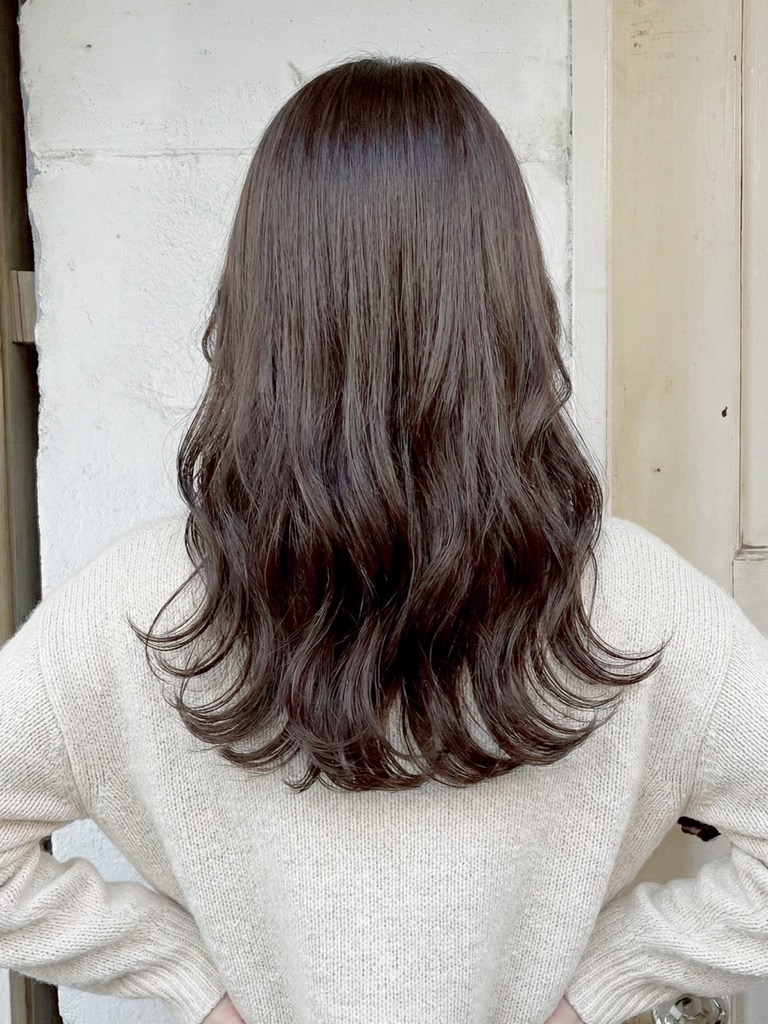 暗めカラーでも重たく見えず、軽やかで抜け感のあるカラーを楽しめます。