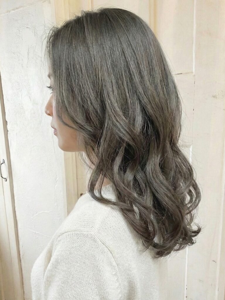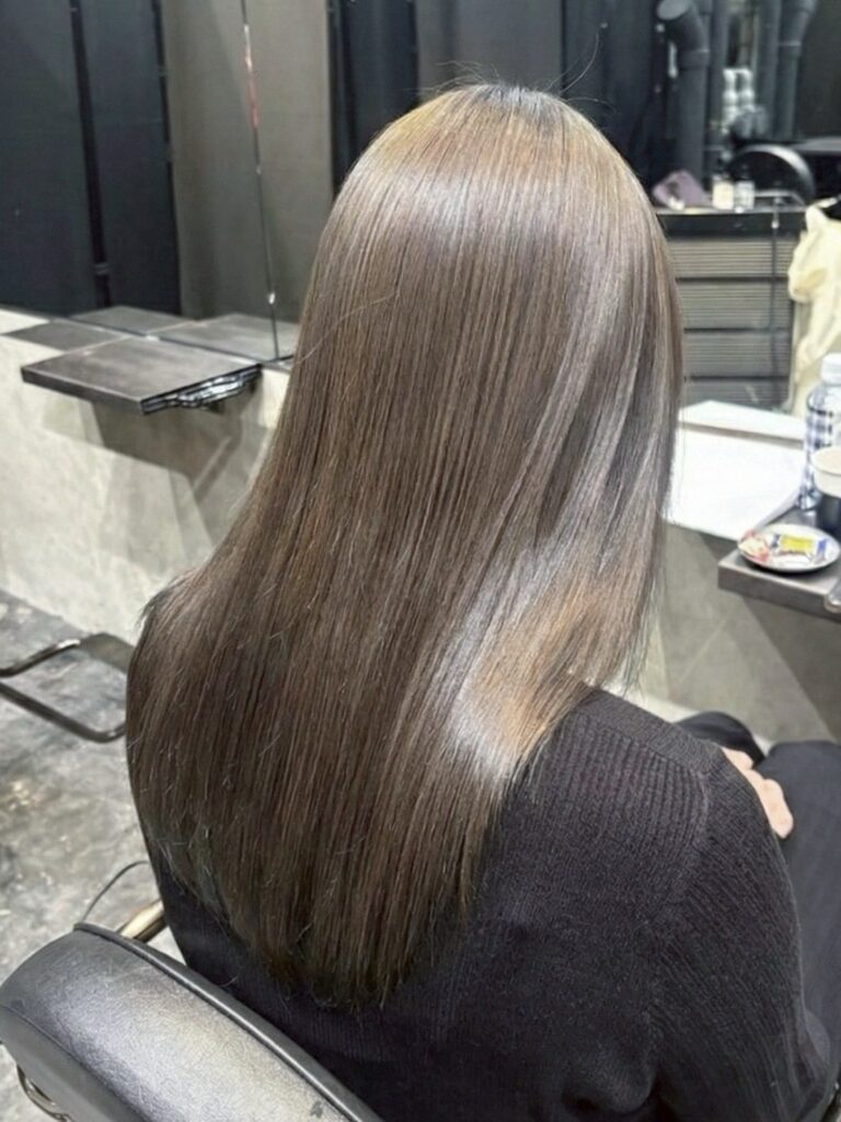 やわらかなクールトーンで、まわりとかぶりにくい髪色に仕上がります。