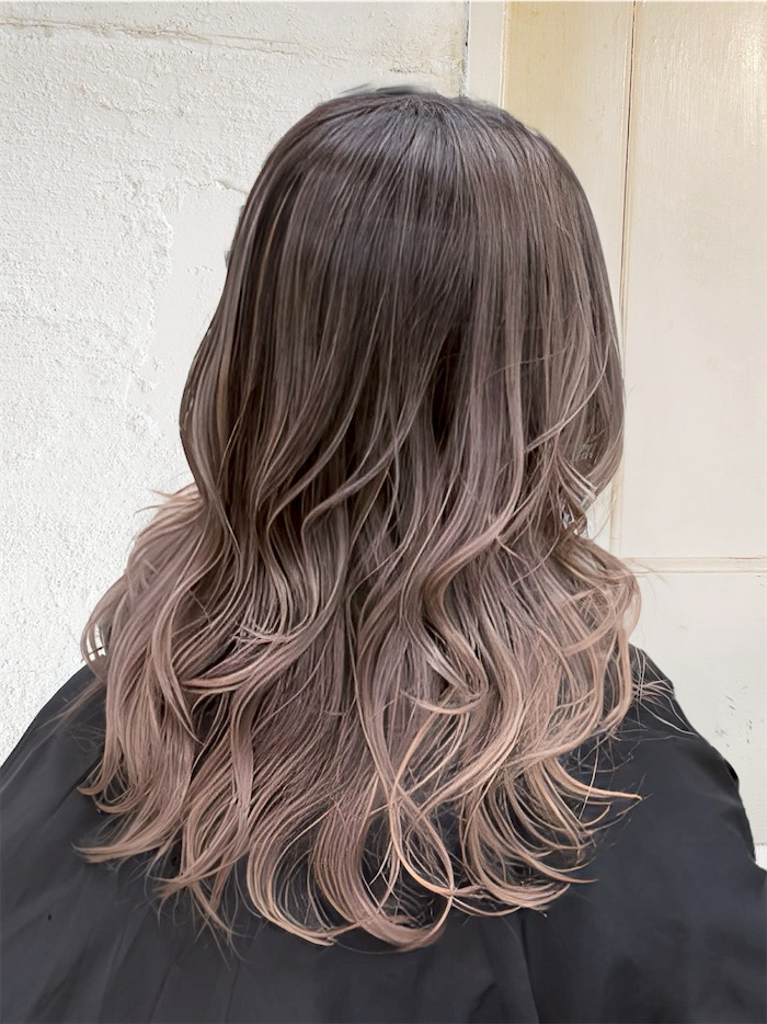 またブリーチなしでバレイヤージュピンクを取り入れると、ブラウンみが強く出るのでナチュラルだけど暖かみのある色に。ピンクピンクしているより、軽くベールを被った様にピンクを発色させたい場合はブリーチなしで染めてあげるのもおすすめです!