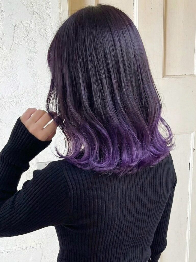 青みがかった紫が毛先にほんのりと入ったグラデーションカラー。
