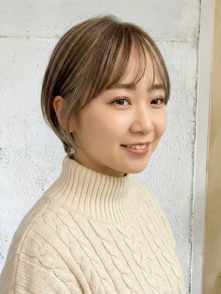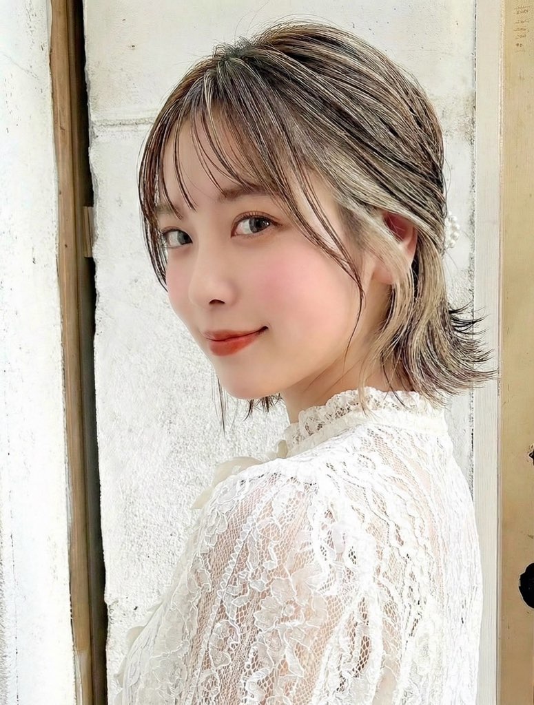 顔まわりに明るい髪が混ざることで、軽やかな雰囲気に。