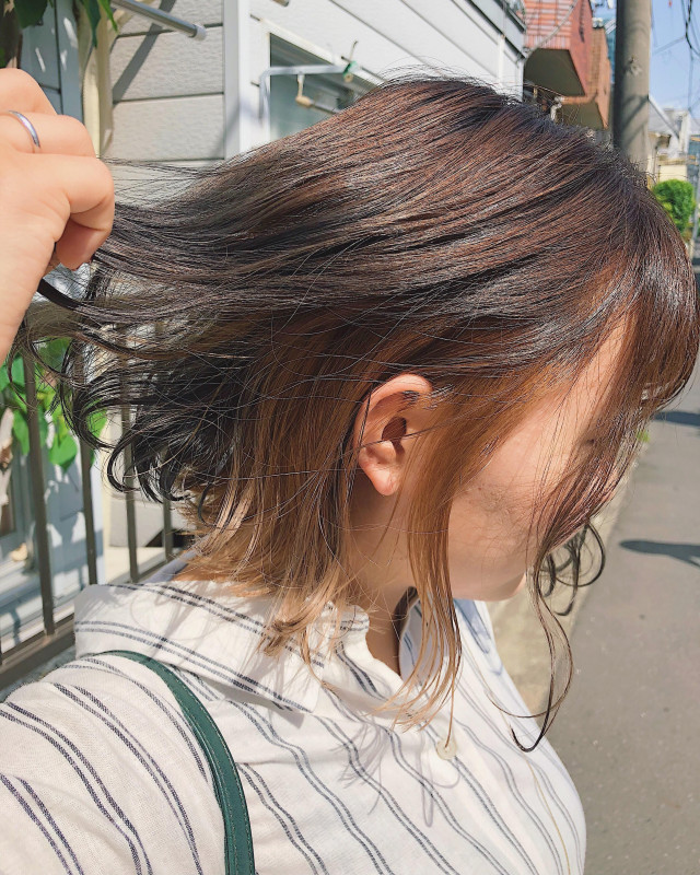 ブリーチをしないでインナーカラーを入れると、ブラウンっぽさのあるベージュに染まります。