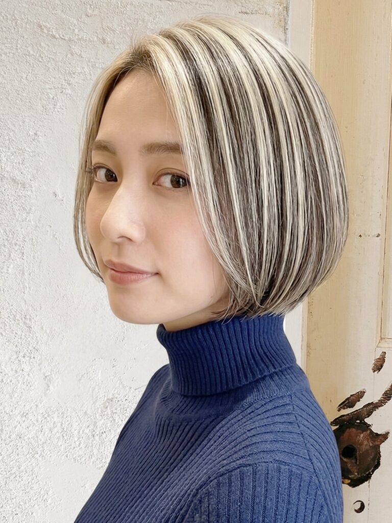 ショートボブの白髪ぼかしアンブレラカラー