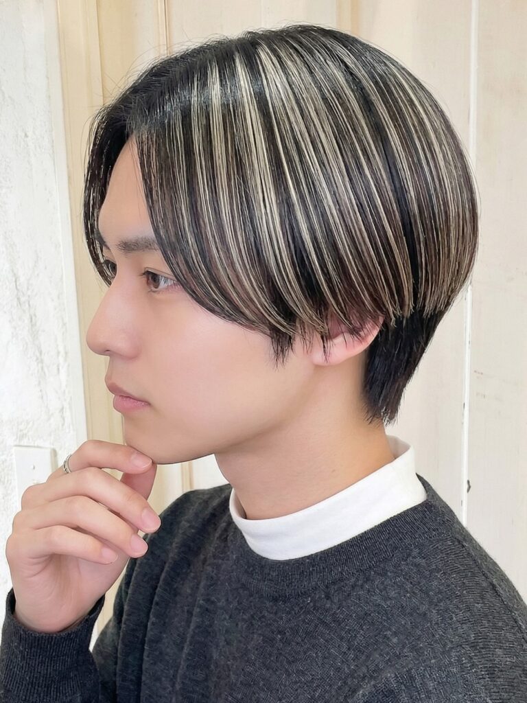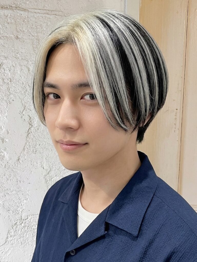 短い髪型のメンズは、全体のブリーチカラーで派手髪にしたり、部分的なメッシュを入れたりするのがおすすめです。