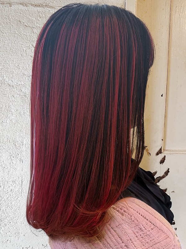 赤|ロングのアンブレラカラー