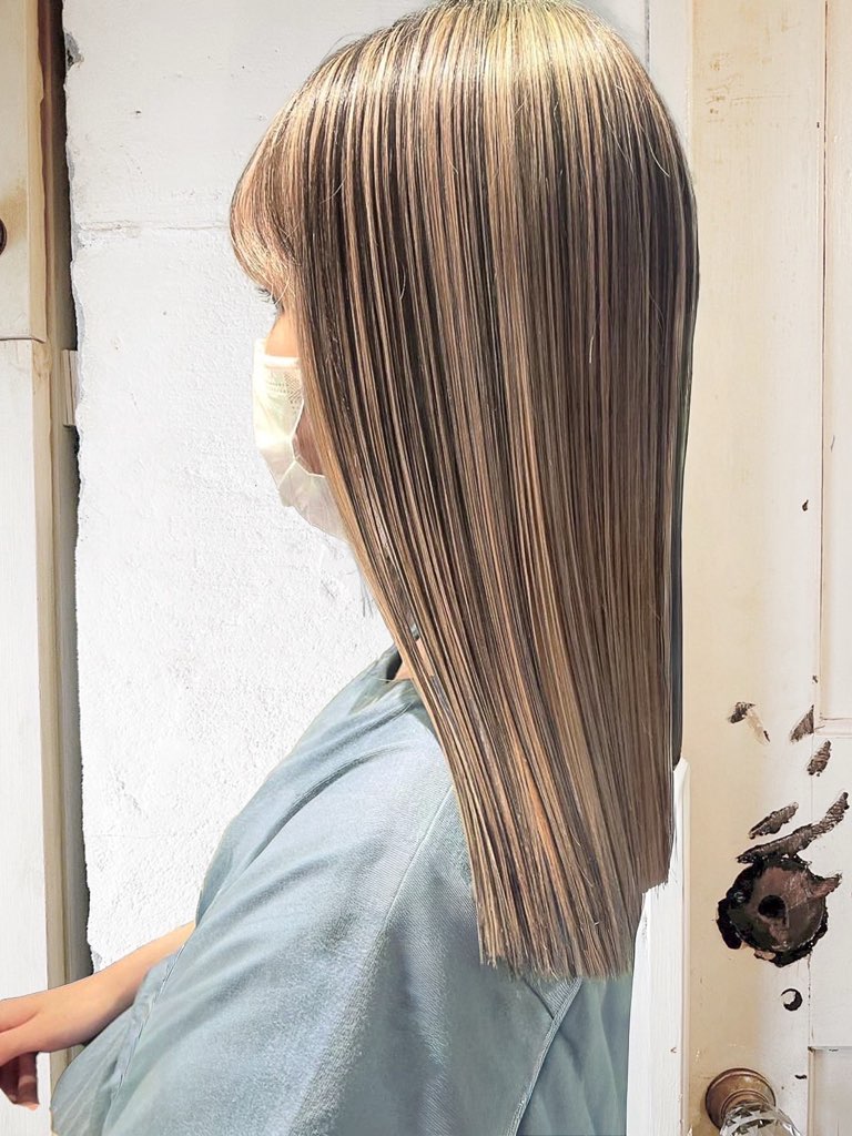 全体をブリーチしなくても、明るく透明感のあるカラーに染まります。