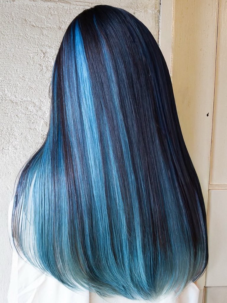 鮮やかなブルーが毛先に広がり、自分らしい個性を出せます。