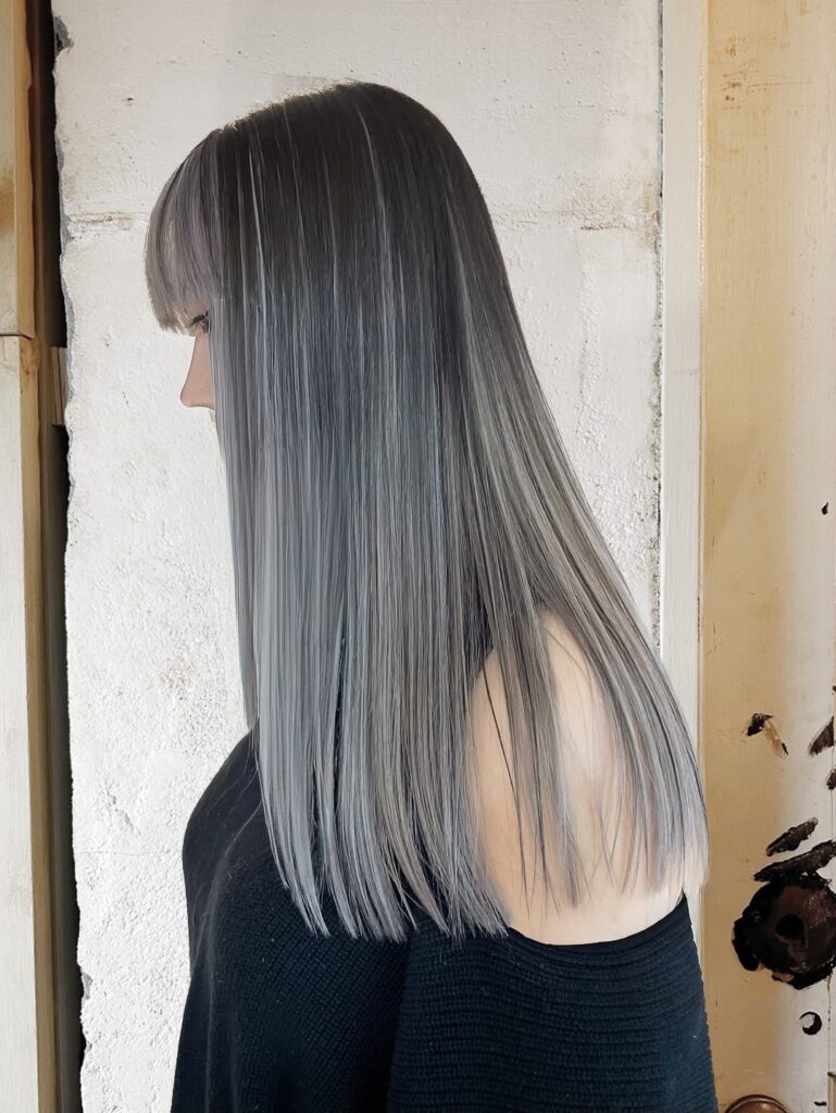 グレイッシュなトーンで透け感のある髪色に仕上がります。