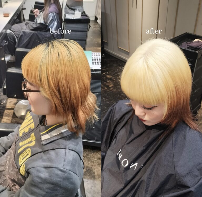 ホワイトブロンドはブリーチが3回程度必要になります。