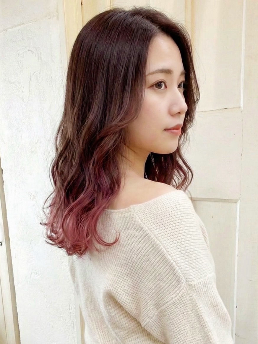 全体と異なる色を用いて毛先を染めることで、まわりと差がつく髪色に仕上がります。