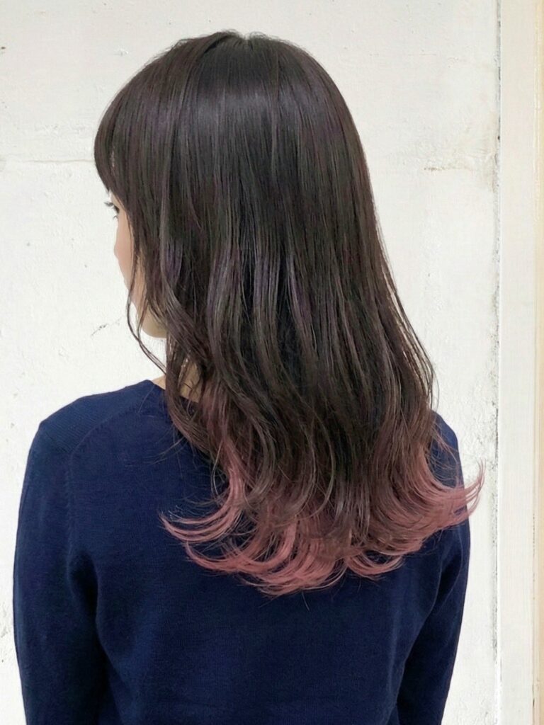黒髪ベースのエンドカラーは、コントラストのついた髪色を楽しめる仕上がりになります。