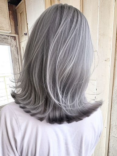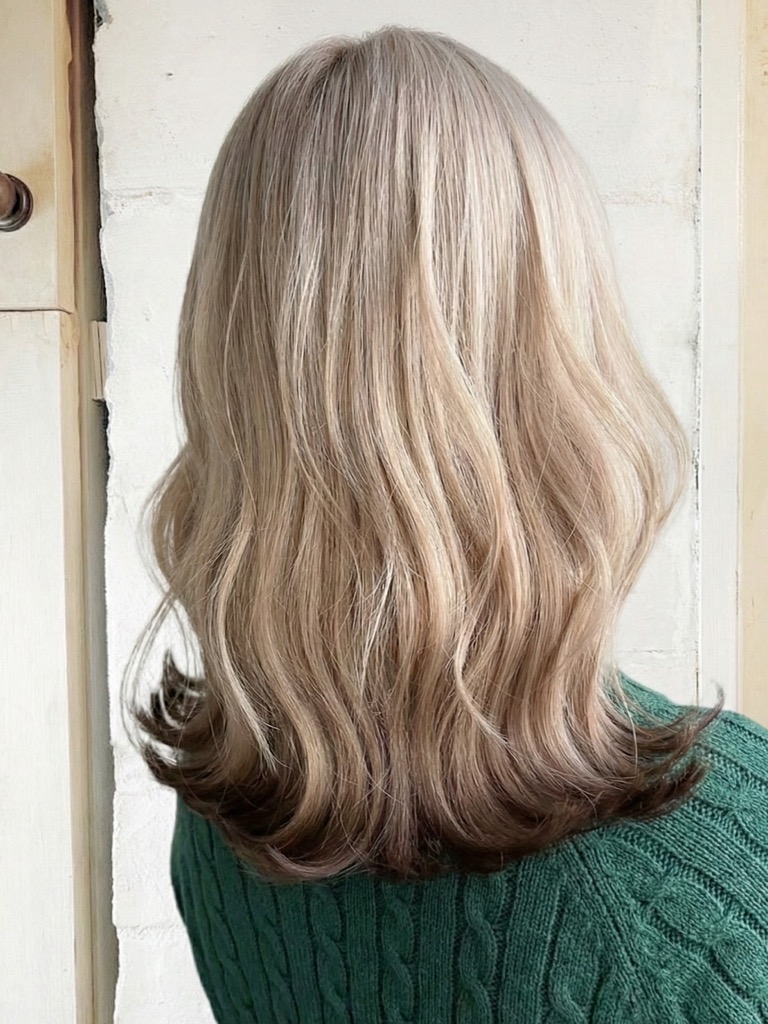黒を入れる前の髪が上の画像のような金髪の場合は、明るいグレーになり、寒色系ベージュになることが多いです。