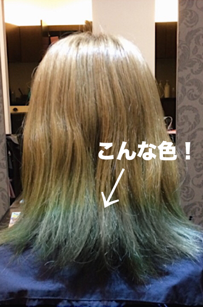 色落ち過程で、下の画像のような濁りの強い緑色になる可能性があるからです。