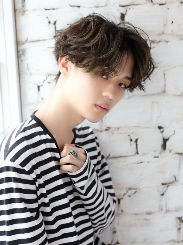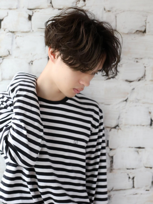 ナチュラルなメンズマッシュとの組み合わせで、柔らかな雰囲気になります。