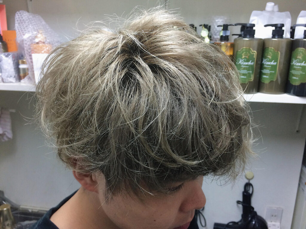 日本人の髪は、染めると赤やオレンジになりやすく、1度のカラーで希望のグレージュにするのは難しいです。