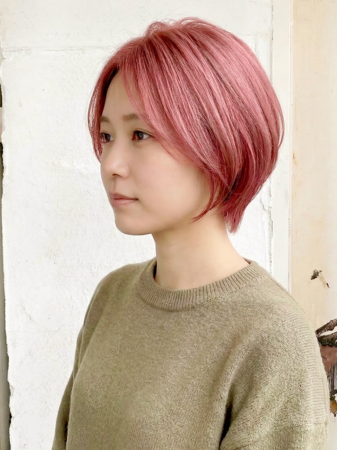 こっくりとした色合いが大人っぽさを引き出すショートのピンクグレージュ。