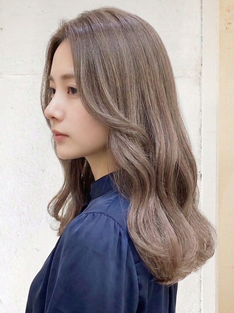 クールな質感とやわらかな色合いが重なることで、透明感のある髪色を楽しめます。