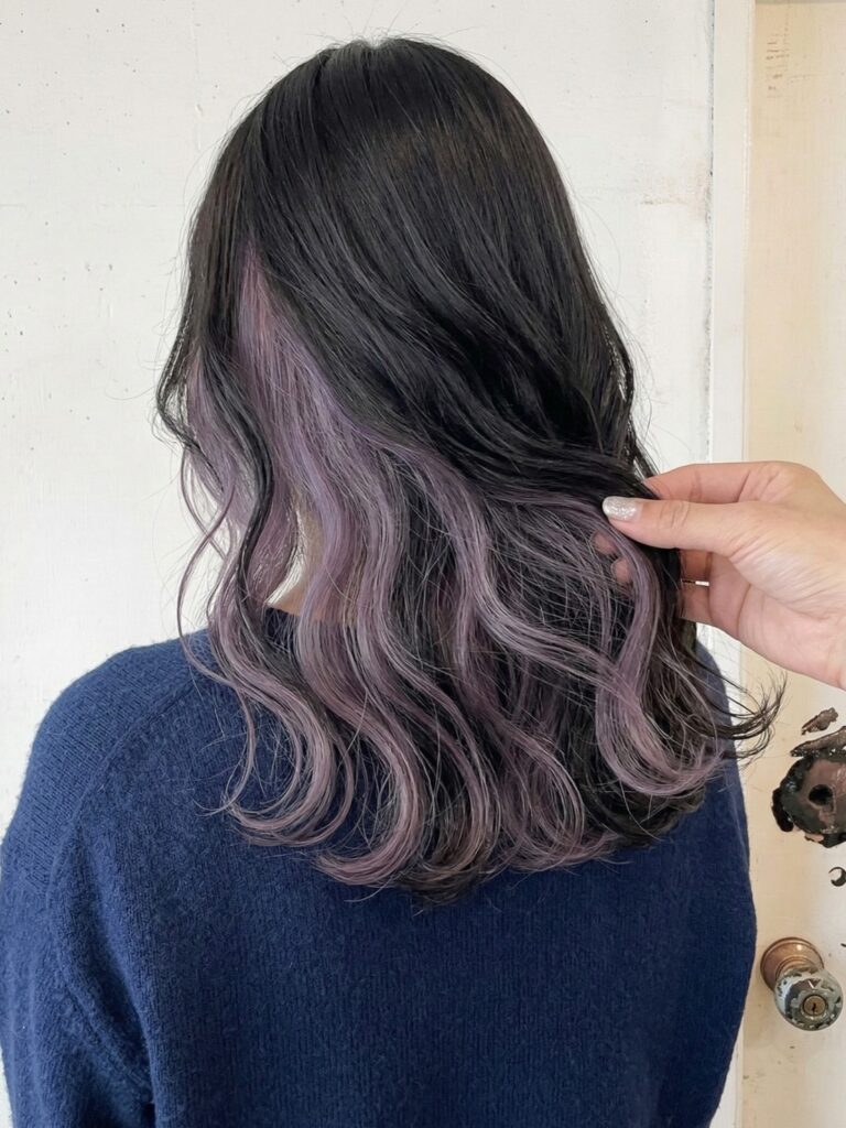 ラベンダーグレーのインナーカラーは、ふわっとしたやわらかさを感じる髪色です。