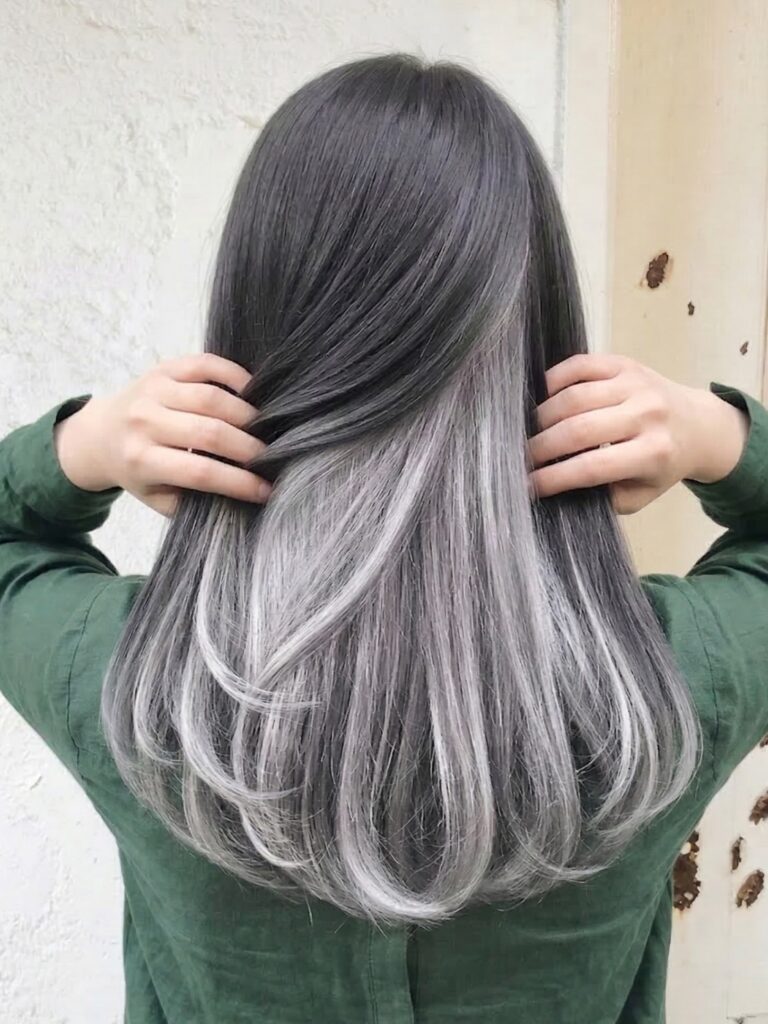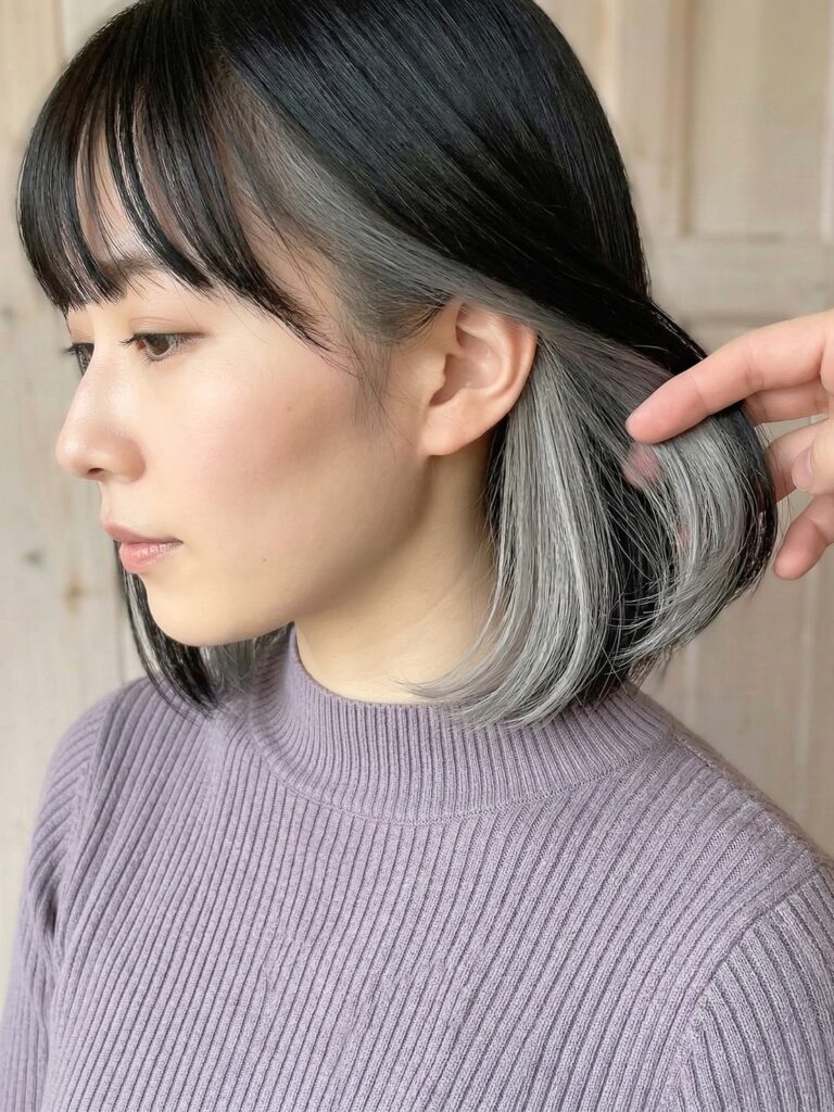 グレーのインナーカラーは、パーソナルカラーがブルベの人によく似合います。