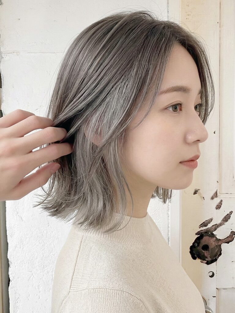 グレーだけで染めるよりもメタリックな質感が加わり、スタイリッシュな雰囲気に仕上がります。