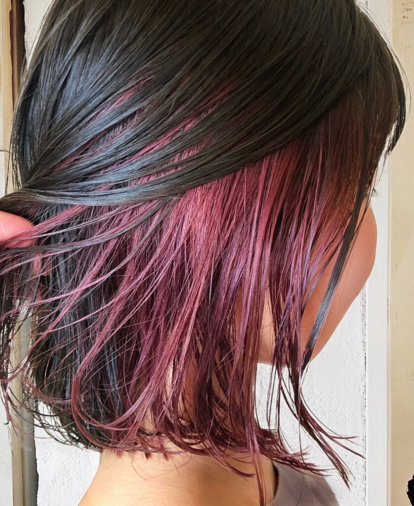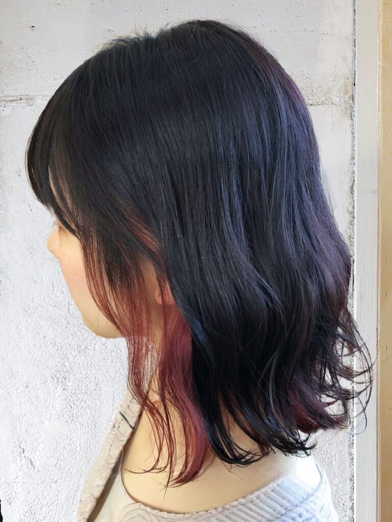 襟足にさりげなく入れるインナーカラーは、「裾インナーカラー」とも呼ばれ、控えめながらもおしゃれ感を取り入れられます。