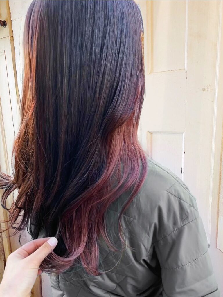 髪を下ろしているだけでも、表面のカラーがしっかりと見えるため、ベースカラーとのコントラストが際立ちます。