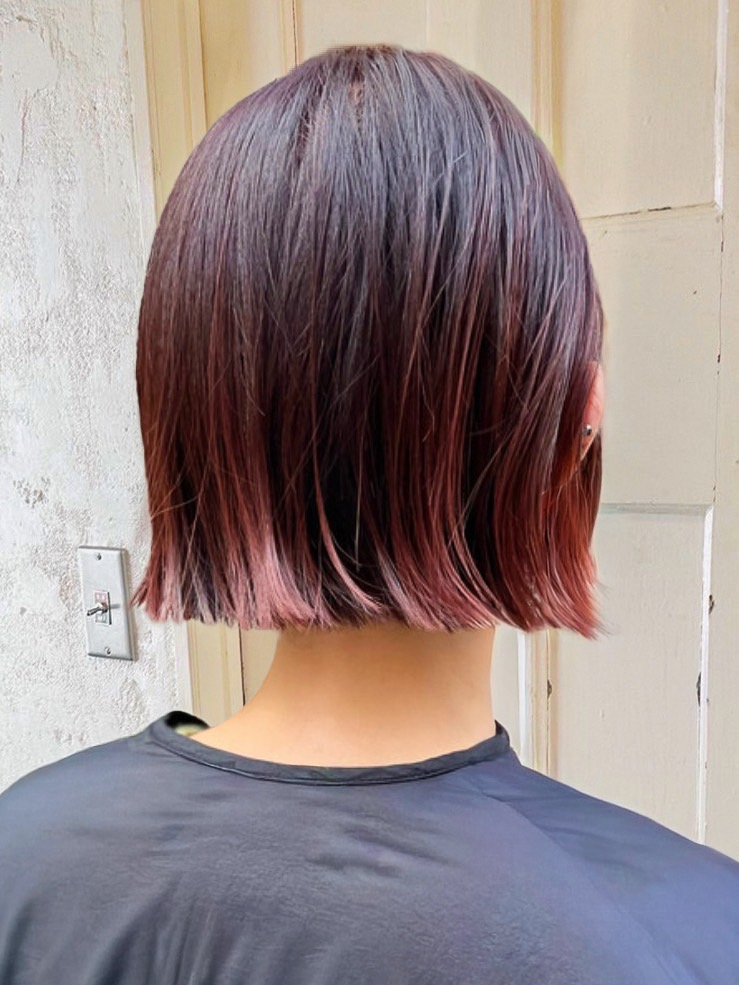 【短めボブ】濃いめピンクアッシュのインナーカラー