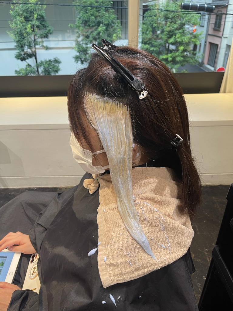 ブリーチなしダブルカラーは、ライトナーと呼ばれる薬剤で明るく染めてから、再び色を入れる染め方をします。