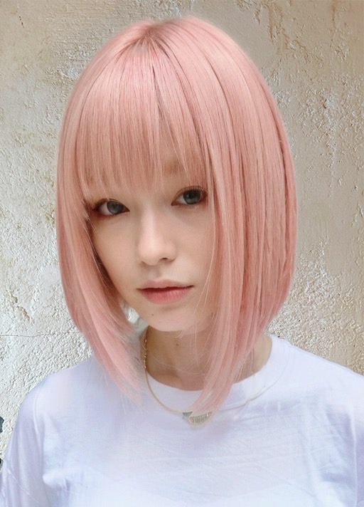 ストレートヘアに映える明るめピンクベージュは、可愛さがグッと引き立つヘアカラーです。