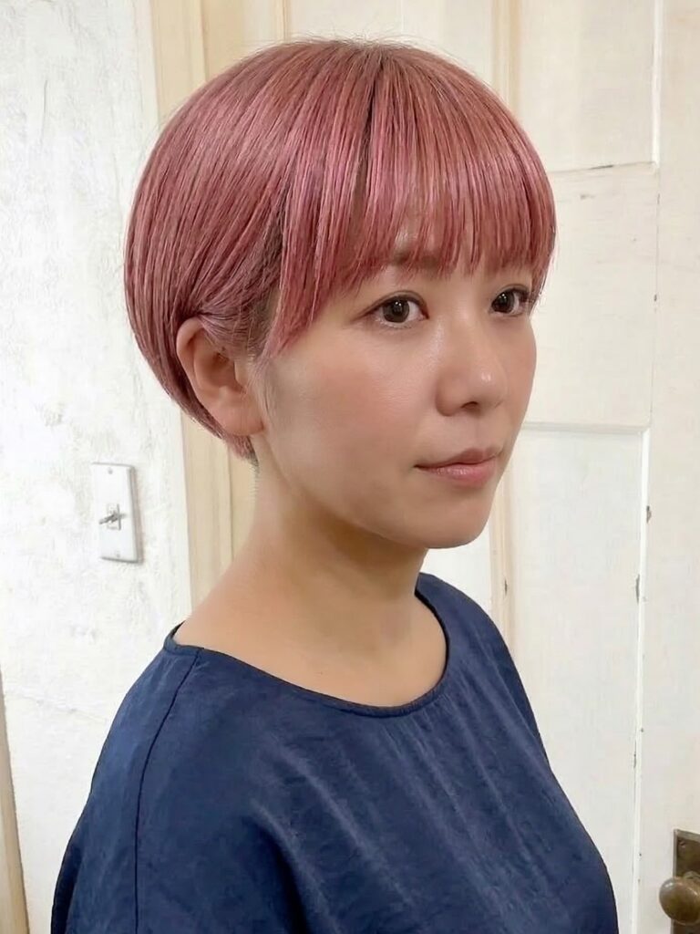 ここでは、暗めのピンクベージュ×ショートのヘアカタログを紹介します。