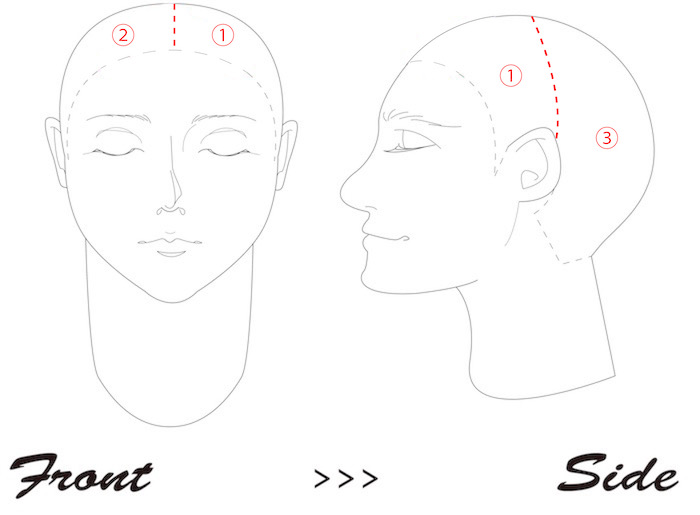 まずは、顔まわり左右・後頭部左右の4つに髪を分けて、ヘアクリップでまとめます。