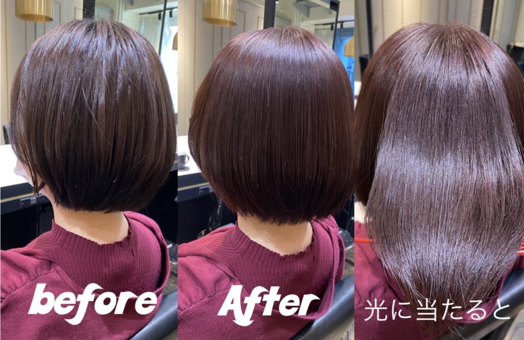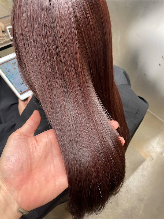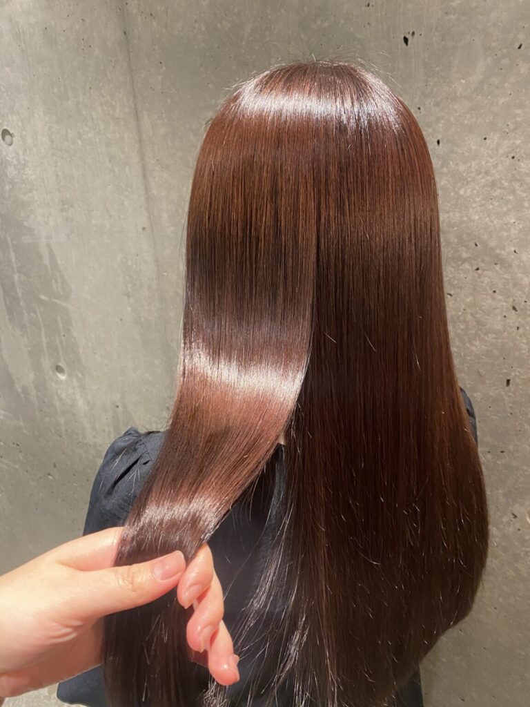 ブラウンのまろやかさにピンクの血色感が混ざり、美しい髪に見せてくれます。