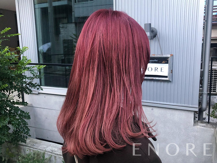 ENORE東京店では、上質なケアブリーチを使用しているので、艶やかなピンクに染まります。