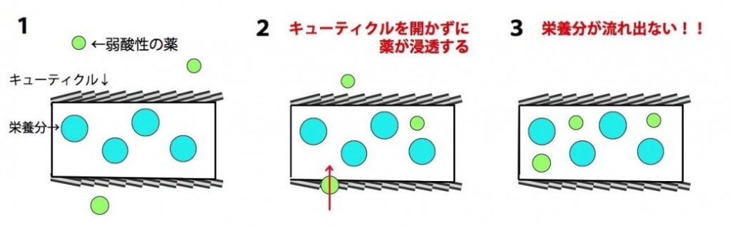 ▼弱酸性カラーはキューティクルをあまり開かずに染める