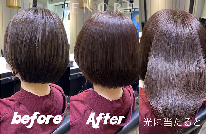 ENOREでは、髪への負担に配慮した施術方法で、色持ちしやすい美しい髪づくりをサポートします。