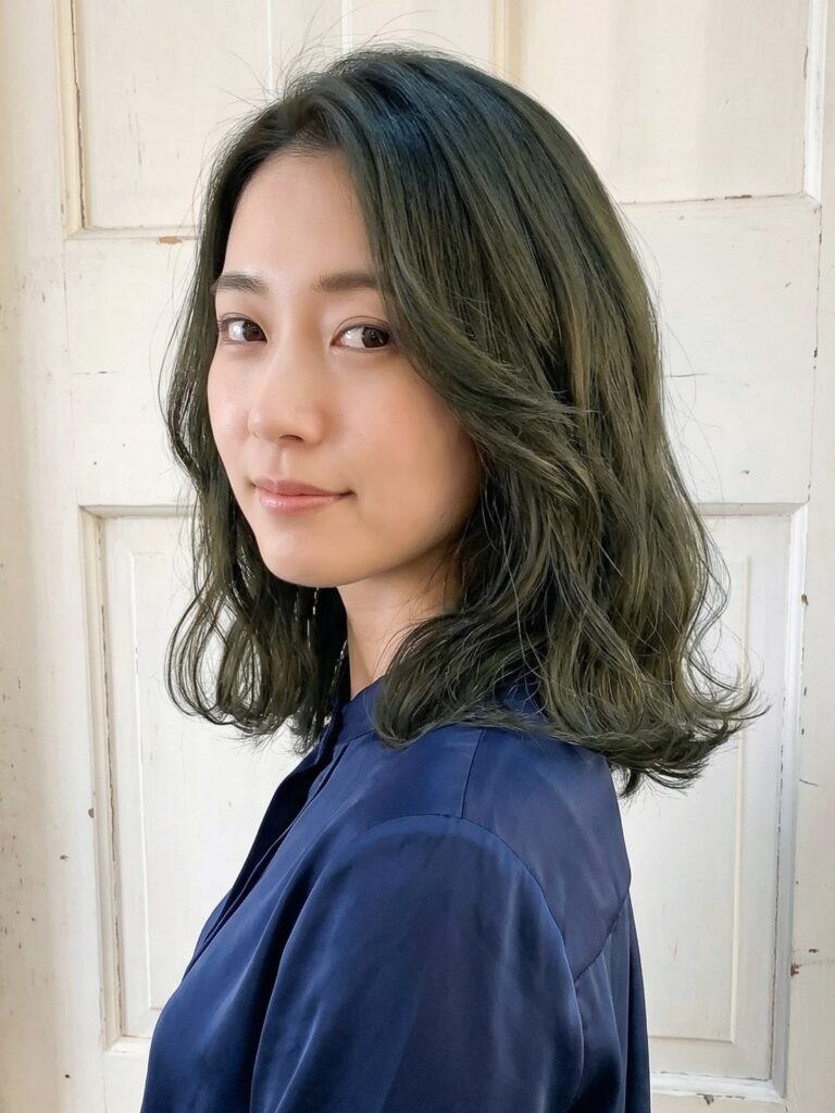 さりげなくアッシュグリーンを取り入れるため、派手になりすぎず、安心してトレンドカラーに挑戦できます。