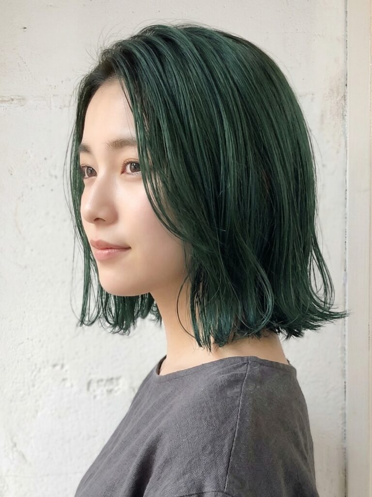 ボブ・ミディアム・ロングの髪の長さ別に、アッシュグリーンの髪型をご紹介します。