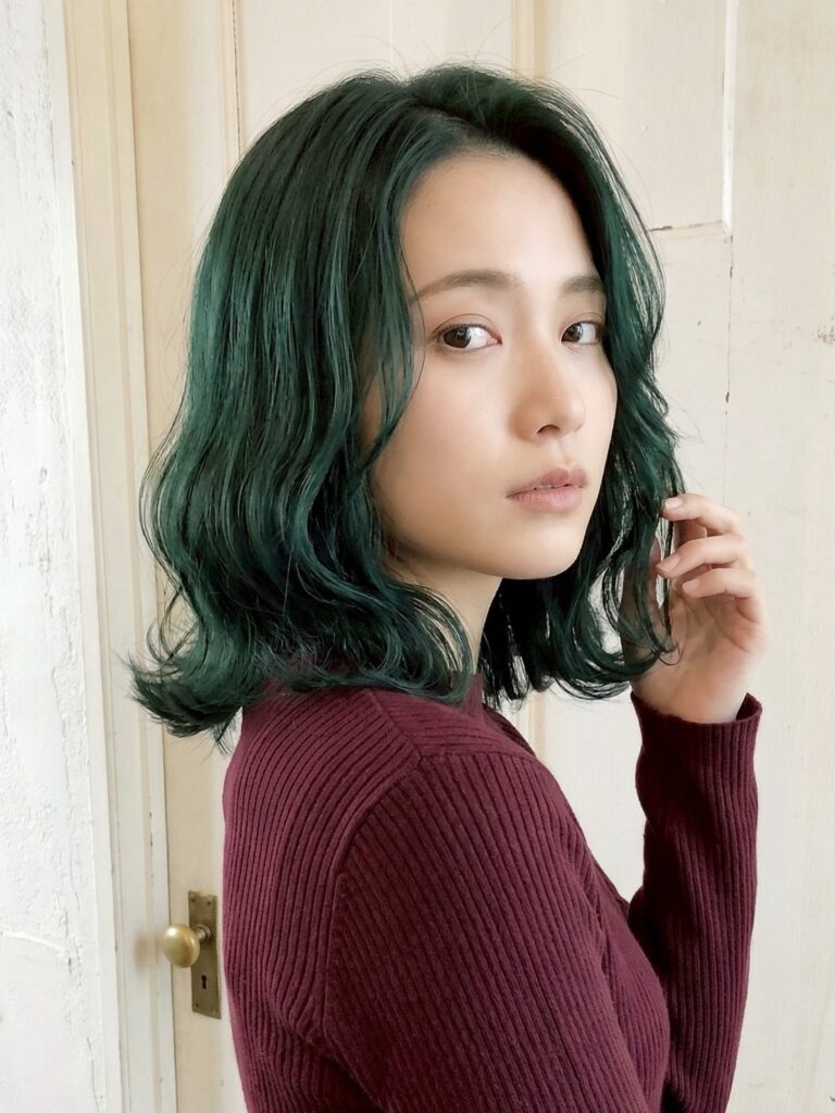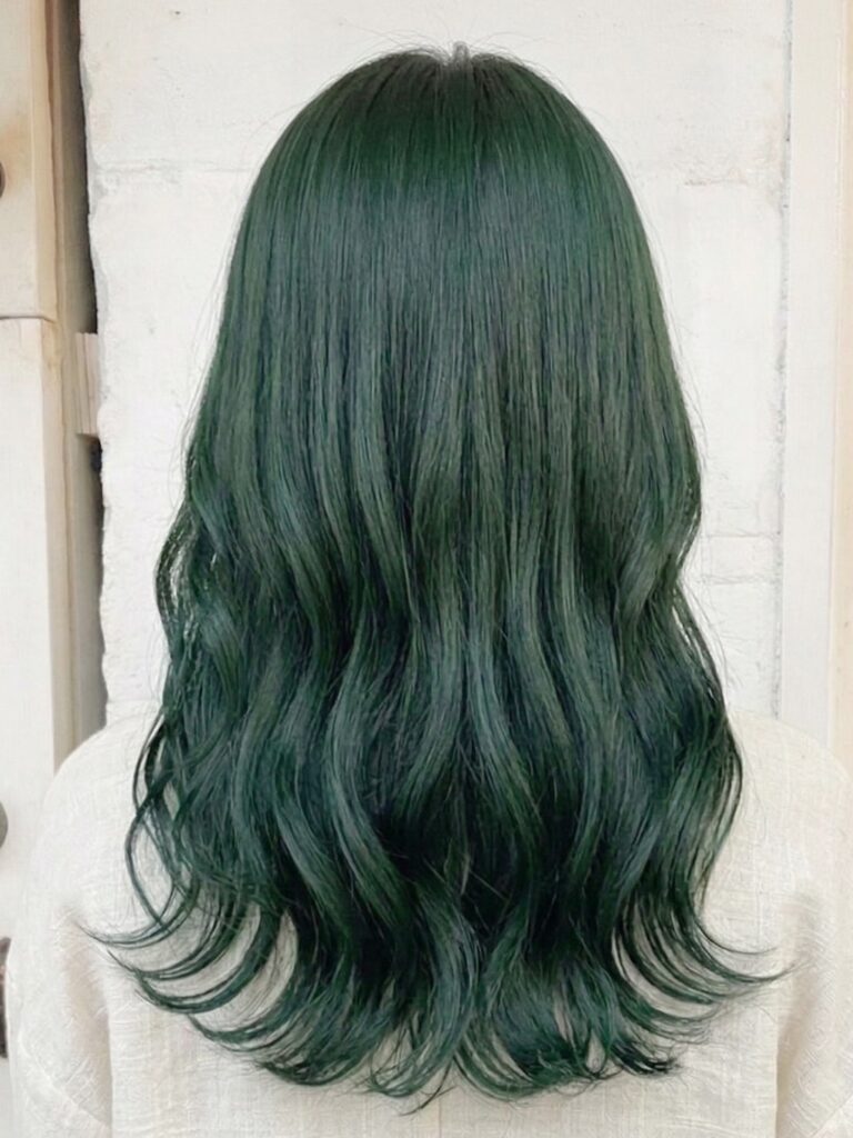 光の当たり方や髪の動きによって、グリーンがちらりと見え、こなれ感のあるおしゃれな雰囲気を演出できます。