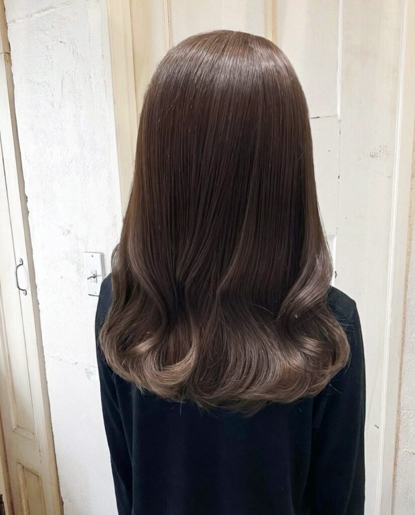 ショコラグレージュは、くすみとツヤをバランス良く取り入れた大人の女性に人気の髪色。